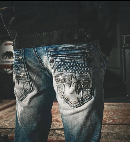Джинсы мужские Affliction ACE - модель Ace fимеет более приталенную посадку в области бедер, прямой покрой, стандартную ширину брючин, подчеркивающую силуэт: не слишком свободную и не слишком облегающую, как у моделей узкого кроя. Джинсы выполнены в классическом дизайне пяти карманов, премиальный деним синего цвета, низкая посадка на талии, пять петель для ремня на поясе. Декорированы: качественной фурнитурой, рельефными швами, декоративной прострочкой и вышивкой. Обработаны с применением винтажной техники состаривания: whiskers-effect, brush-effect (выцветание, потертости, отбеливание), destroy-effect (прорези, дыры и протёртости), сrinkle-effect (мятые складки). Задние накладные карманы, украшены: вышитыми из кожи геральдическими лилиями и рельефной прострочкой. Стильная, удобная, непринужденная модель, которую можно дополнить ремнём и удачно комбинировать с футболками, рубашками, пуловерами, толстовками и кожаными куртками.